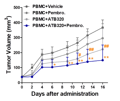 Synergistic anti-cancer effect of tumor growth inhibition with pembrolizumab has been confirmed in humanized mouse model.