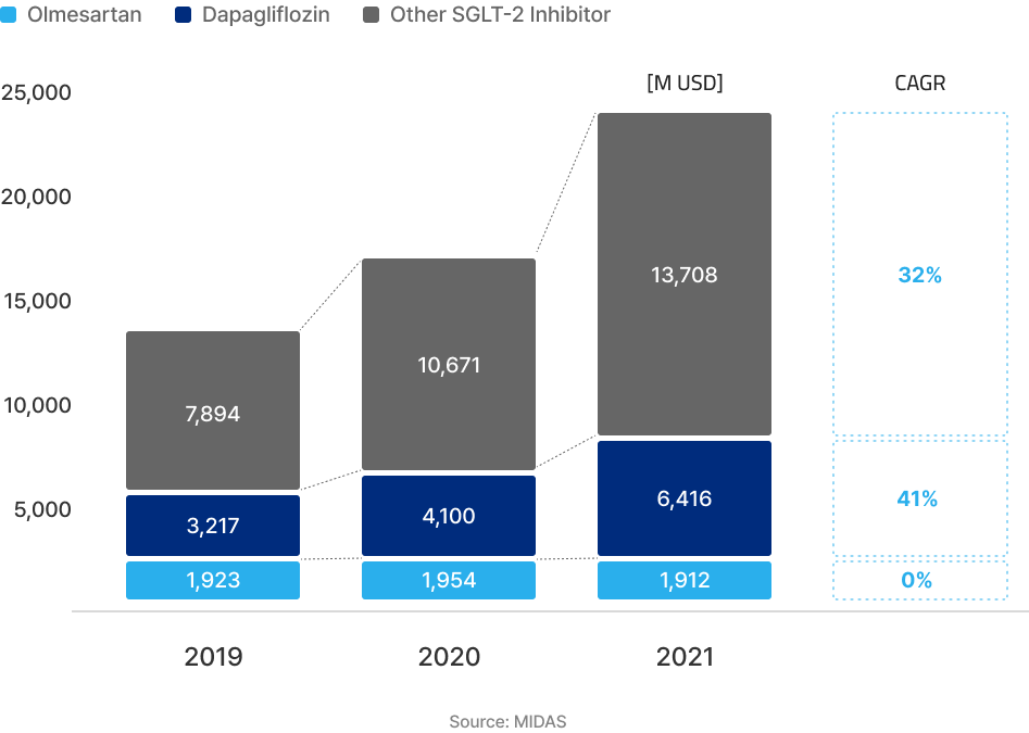 The market size for Olmesartan and Dapagliflozin combined is around 8.3 billion USD.