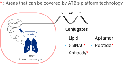 by utilizing conjugate techniques between antibodies, peptides, and ASOs to reduce side effects and increase efficacy.